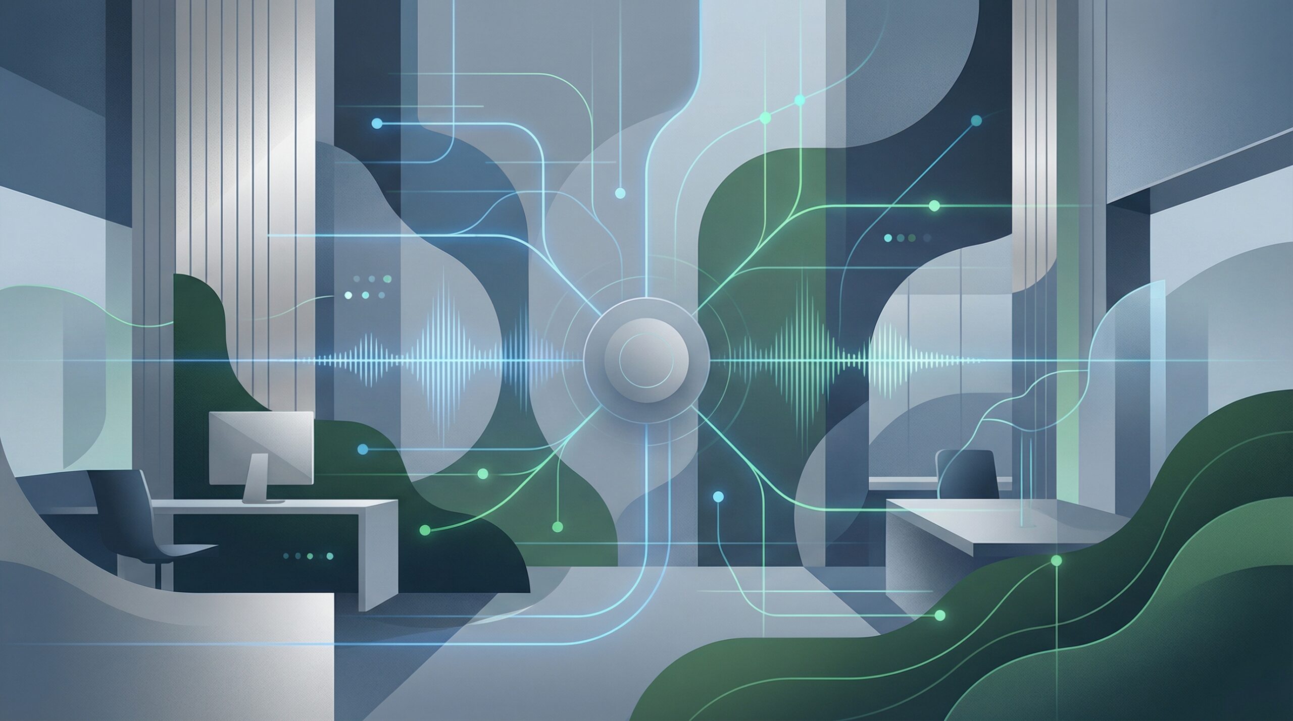 一つは、会議室やオフィスのファシリティマネジメントです。従来のような複雑なタッチパネル操作ではなく、「プレゼンモードにして」と発話するだけで、照明の照度調整、プロジェクターの起動、ブラインドの開閉、さらにはWeb会議システムの立ち上げまでを一括で自動化できる可能性があります。総務部門の負担軽減や、会議準備の効率化に直結します。