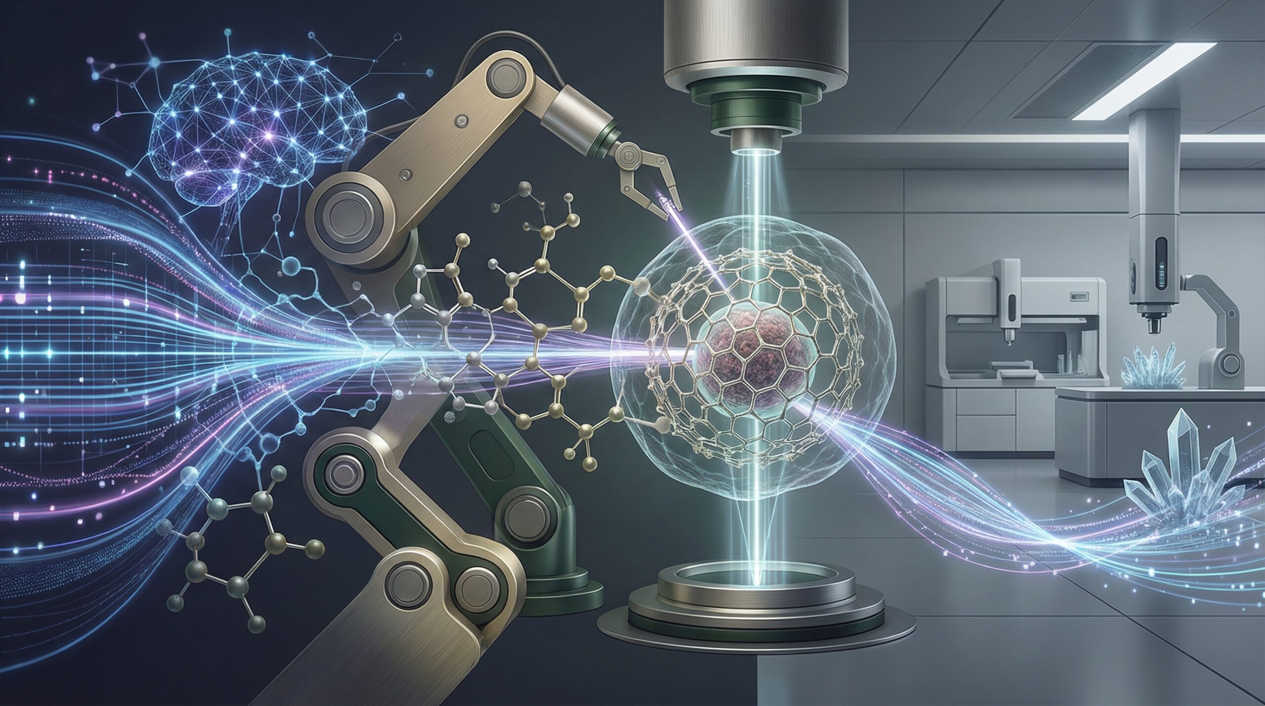 生成AIが提案した分子構造は、あくまで計算上の予測に過ぎません。ここで重要となるのが、物理的な実験を行う「ウェットラボ」の自動化と、そこから得られるデータの還流です。対談でも触れられた「ロボティック・ウェットラボ」と「クローズドループ」の概念は、AI活用の成否を分ける重要な要素です。