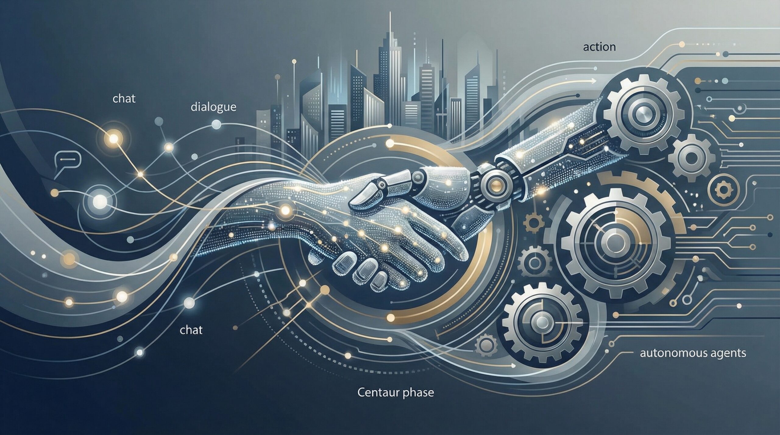 元記事にある「ケンタウロス期」という表現は、ギリシャ神話の半人半獣の種族になぞらえ、人間とAIが一体となって業務を遂行する形態を指しています。しかし、従来の「人間がAIを道具として使う」形から、「AIが実務の大半をこなし、人間は監督・指揮に回る」という形への変化を暗示しています。