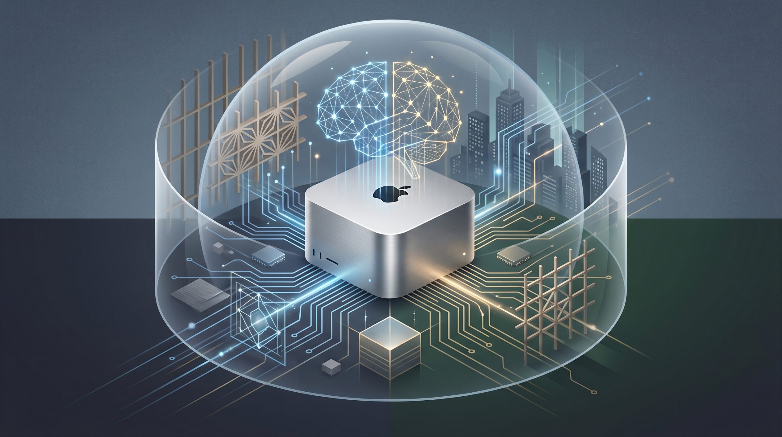 この背景にあるのが、Appleの独自チップ(Appleシリコン)が採用している「ユニファイドメモリ」の構造です。通常のPCではCPUとGPU(画像処理半導体)でメモリが分かれていますが、ユニファイドメモリは両者で大容量のメモリを共有できます。これにより、高価な専用GPUサーバーを用意せずとも、数十億から数百億パラメータ規模のAIモデルを比較的高速に動かすことが可能になりました。AI実行に必要な条件をコンパクトな筐体に備えている点が、Mac miniが再評価されている最大の理由です。